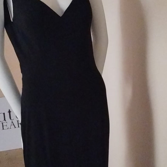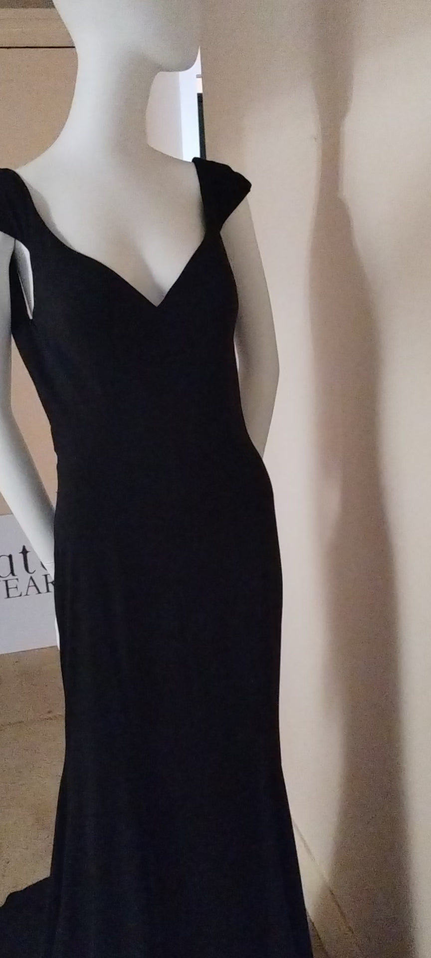 Size 12 long black elegant dress. Wide straps deep sweetheart bodice. Small train