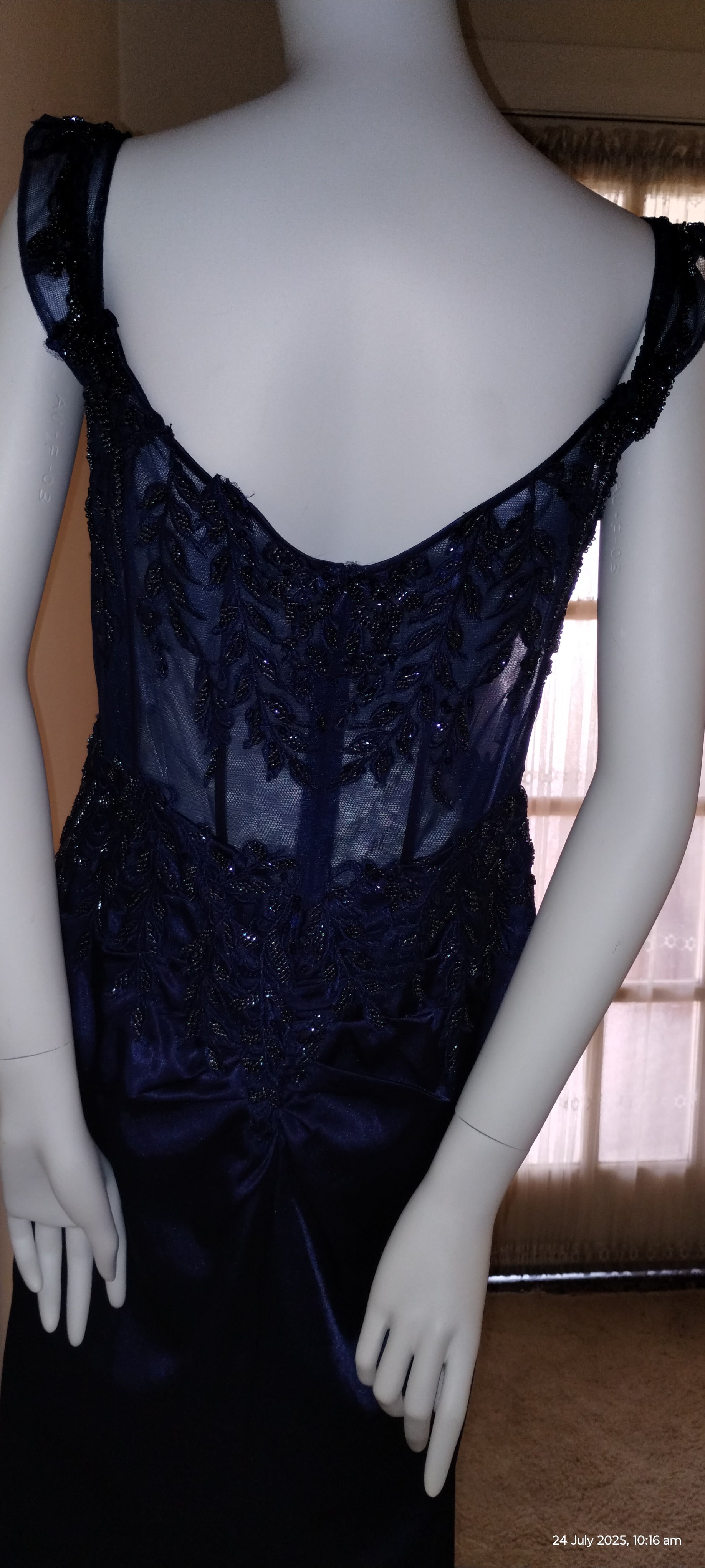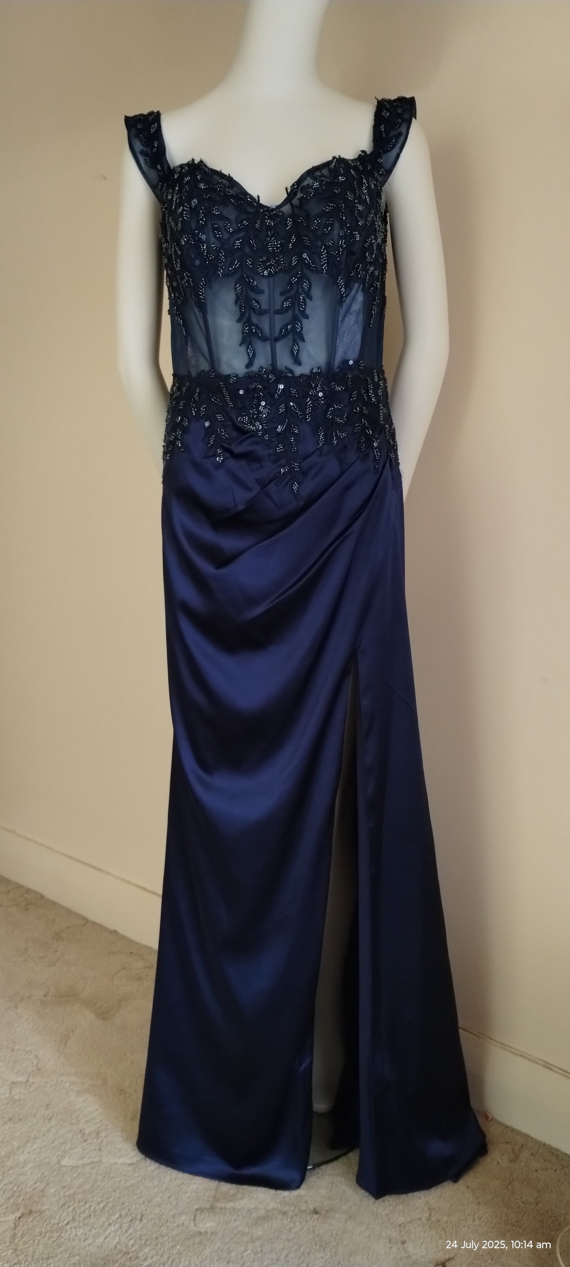 E Size 12 Navy see through corset long dress