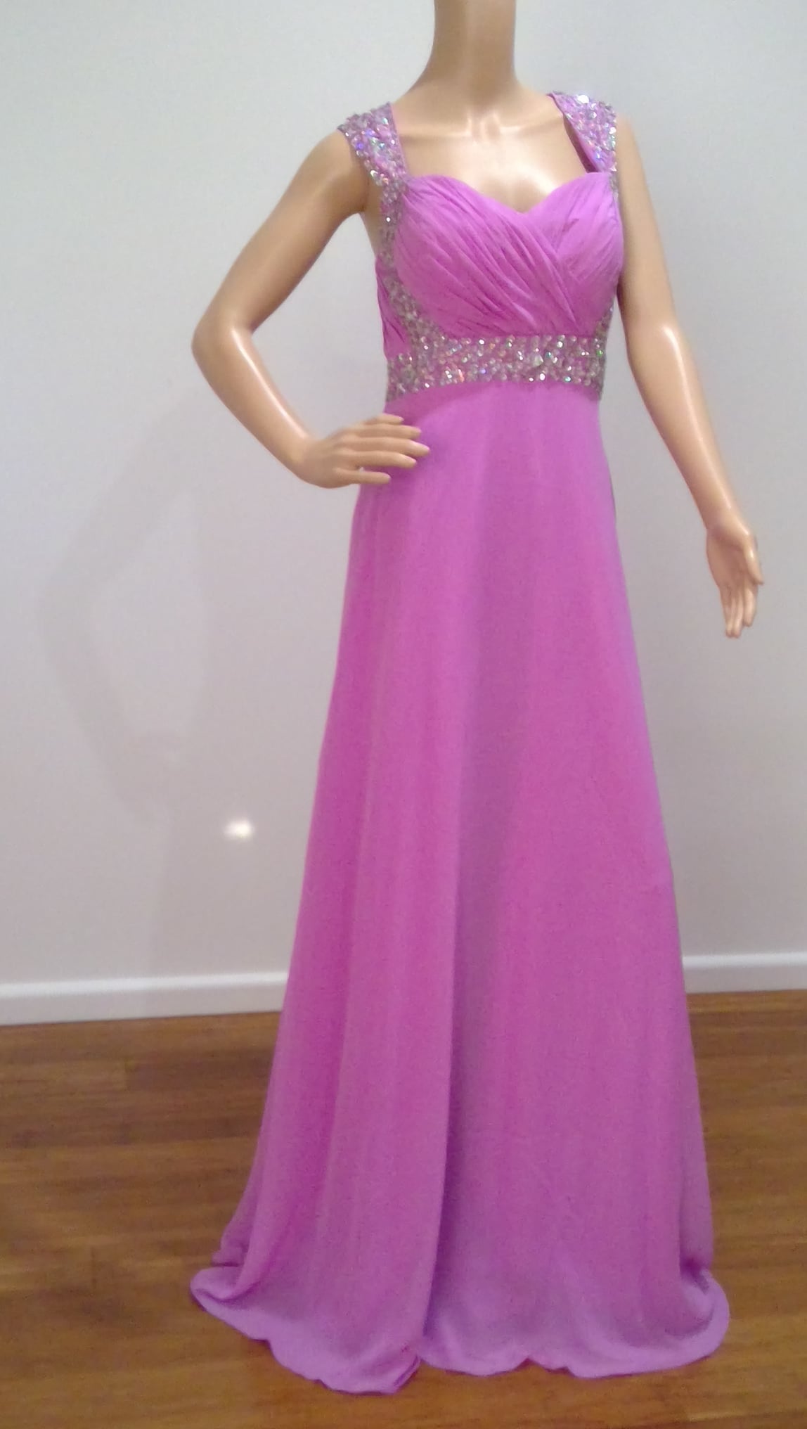 f size 14 Lilac full length dress with beaded waist and strap detail.