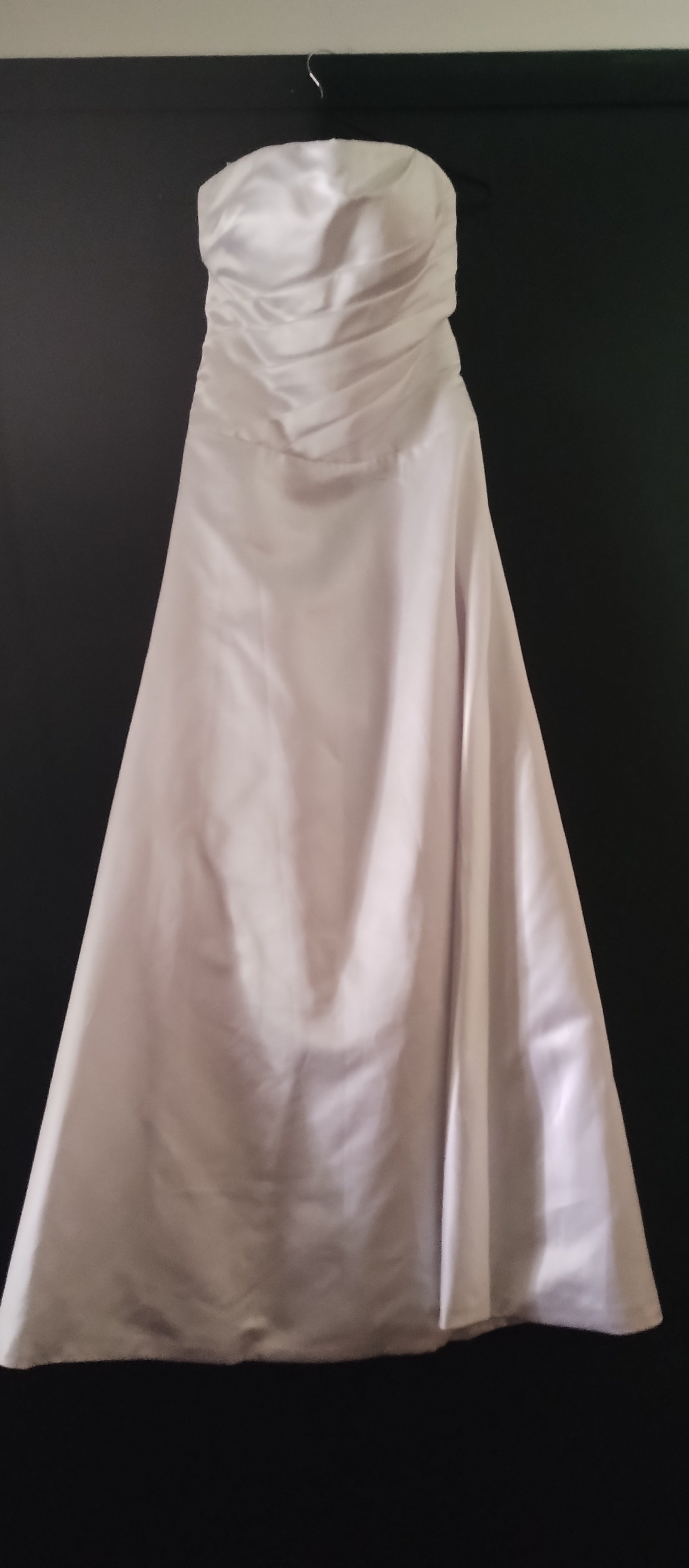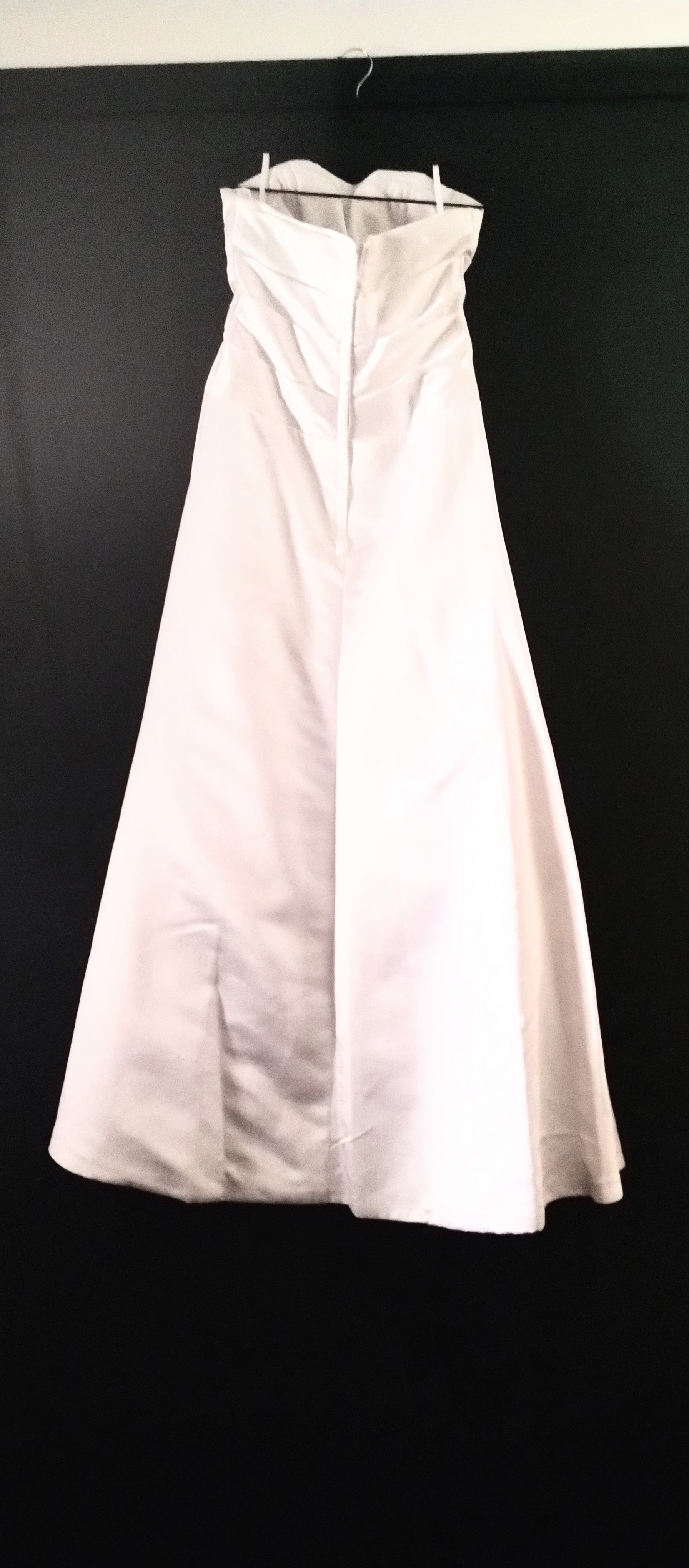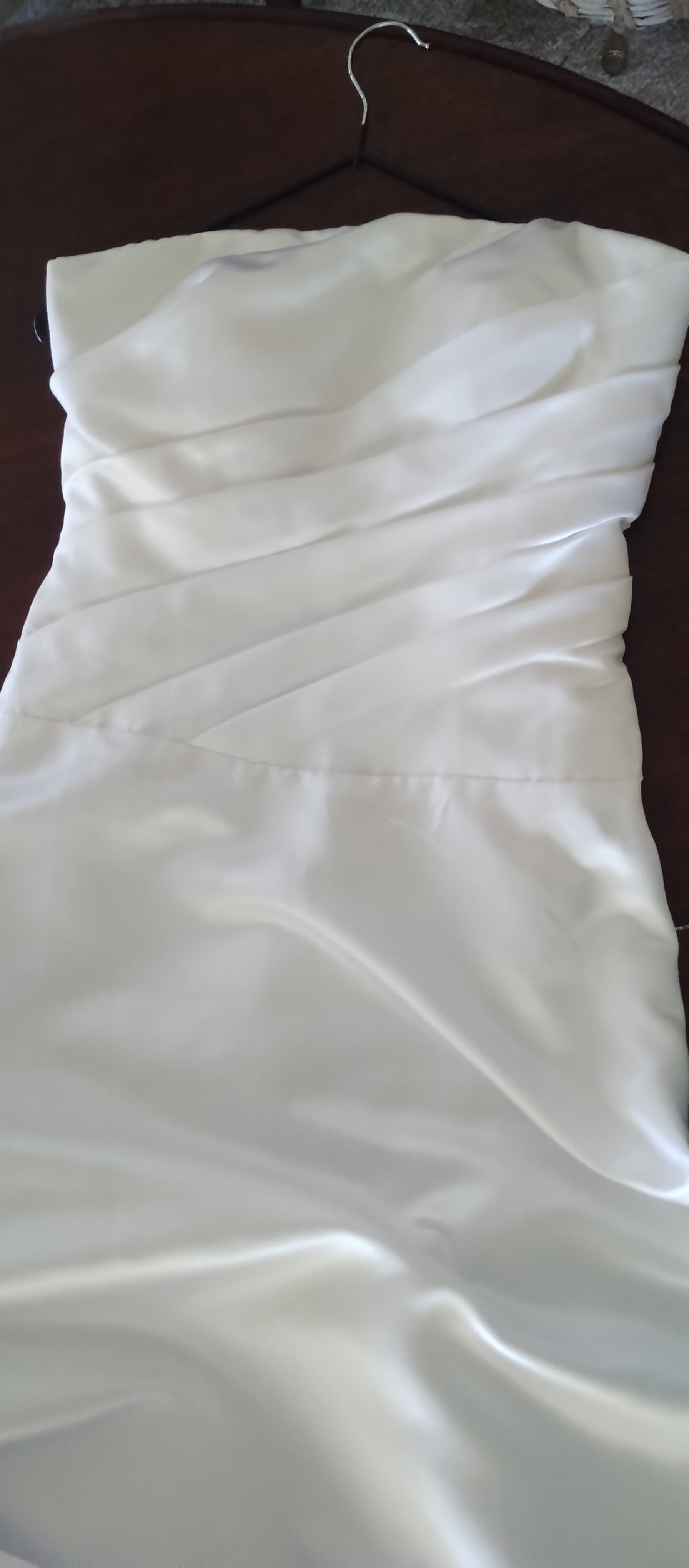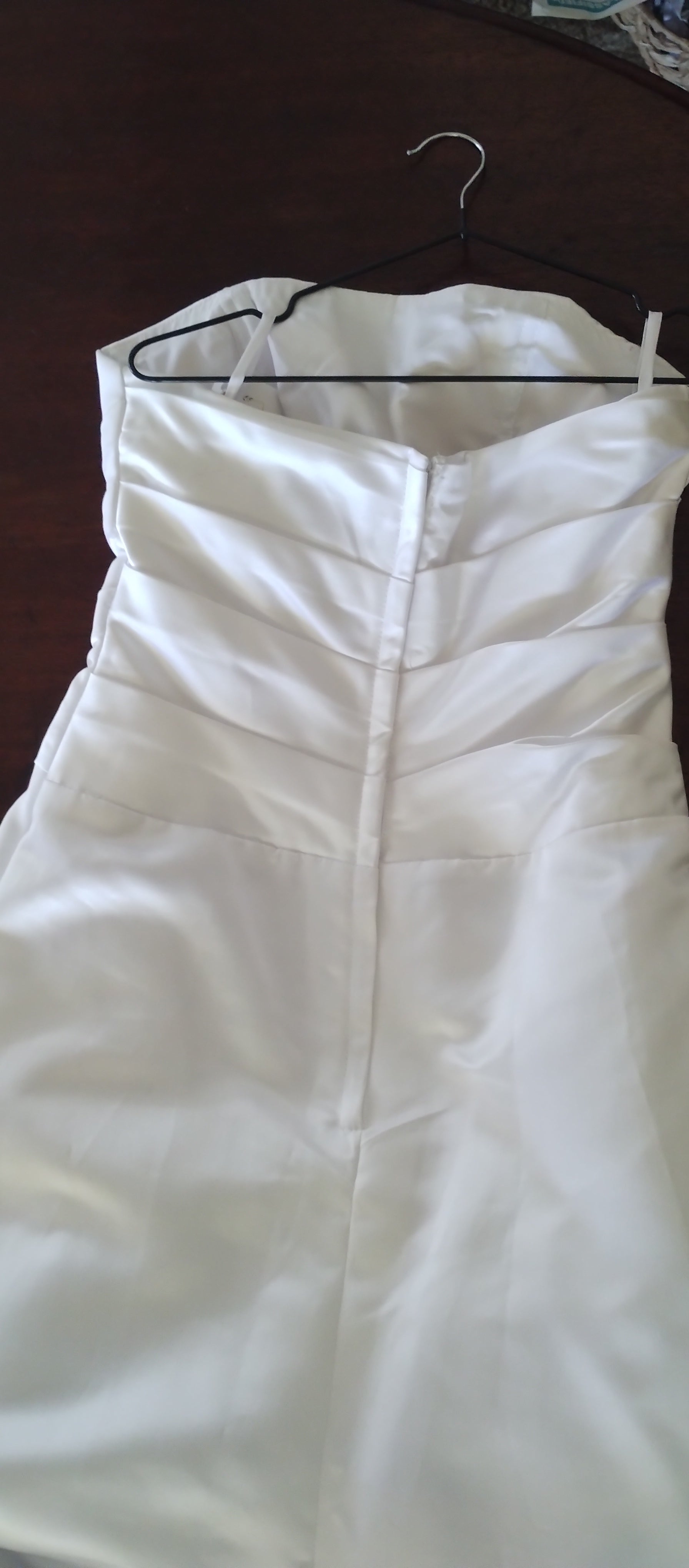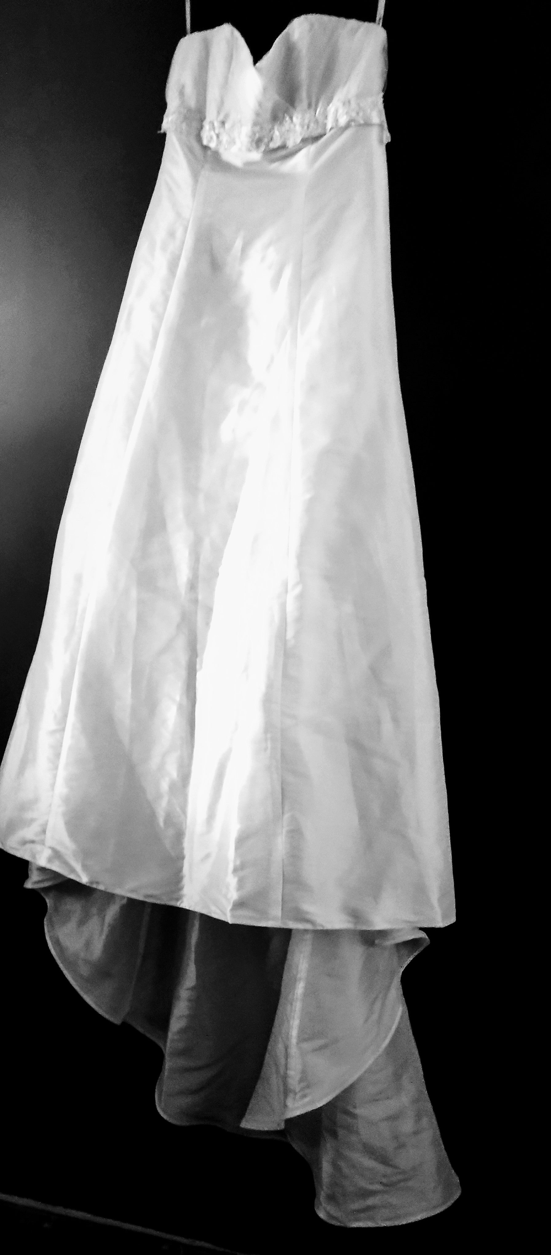 Dramatic sheath with A line skirt. Wide diagonal pleats across bodice front and back.