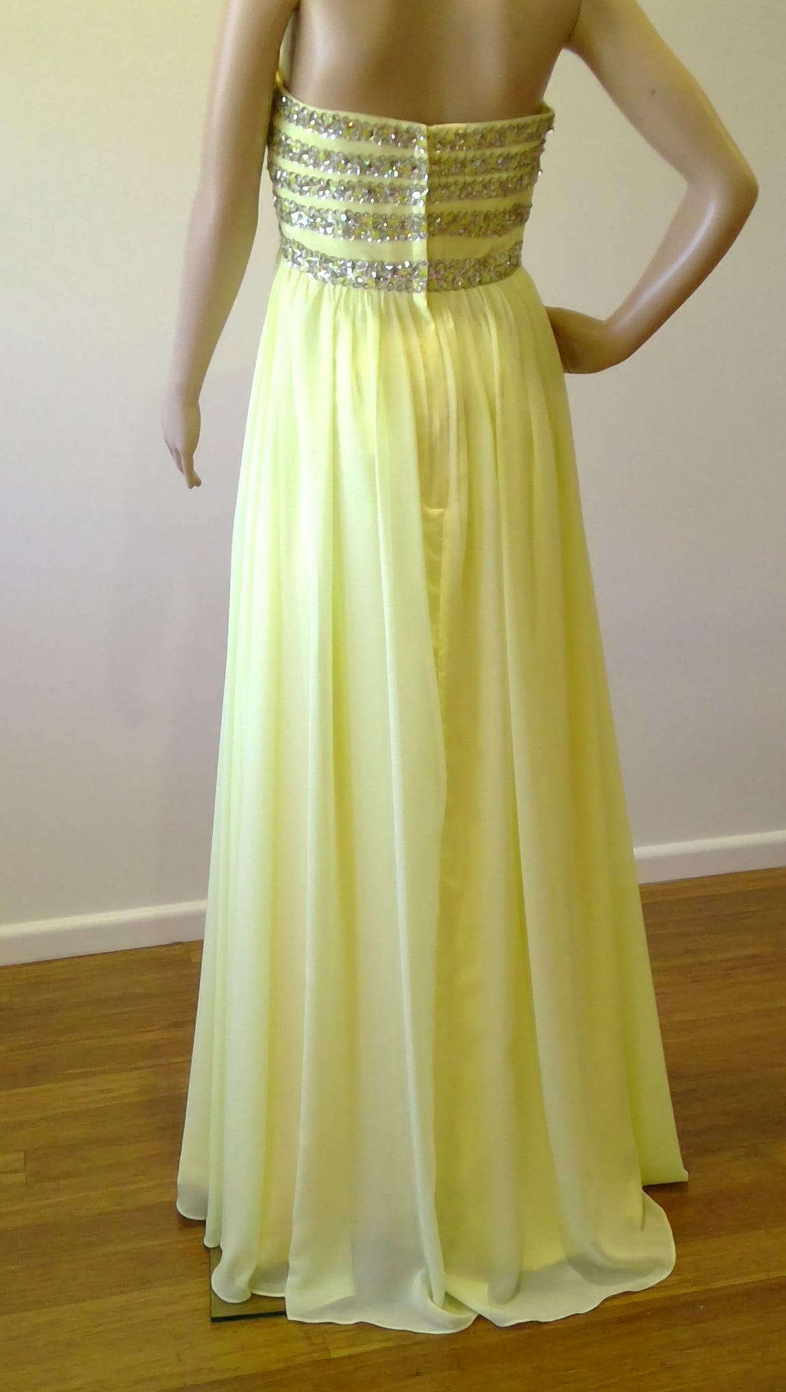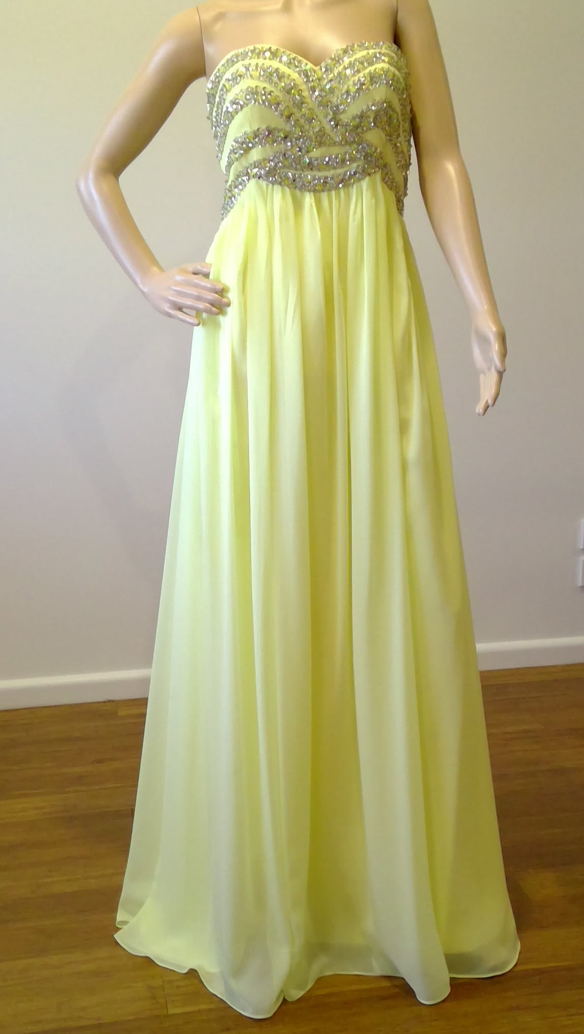 d Size 10 pale yellow sheath with sequinned bodice